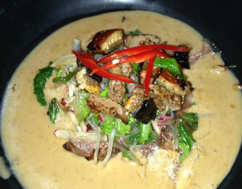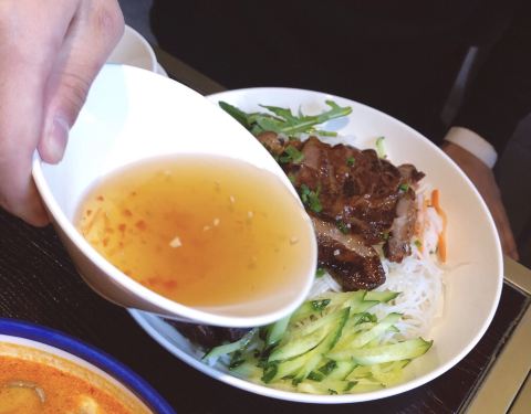 - ...的越南牛肉粉啦,加了点泰国风味的酱汁,倒是很棒,然后吃了海南鸡饭哦,算是做的很正宗,米饭有鸡油