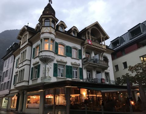 这是一家全球连锁的法式餐馆,因特拉肯的这家装修的很有法国浪漫的情调,幽暗的烛光,柔美的法式音乐,加上美味的法式菜肴和甜品,真的是一种很好的就餐体验。