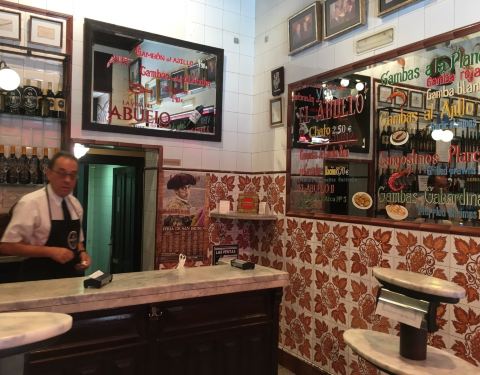 典型的西班牙传统风格的餐馆 ,店里经常是从早到晚每个时间段都有食客到来,几只炸海虾,一小杯啤酒,下午茶时光也可以这么度过,平时和朋友经常来这边小聚一下,价位适中,不会让人感觉太过昂贵,总体来说不错的,可以推荐一下~