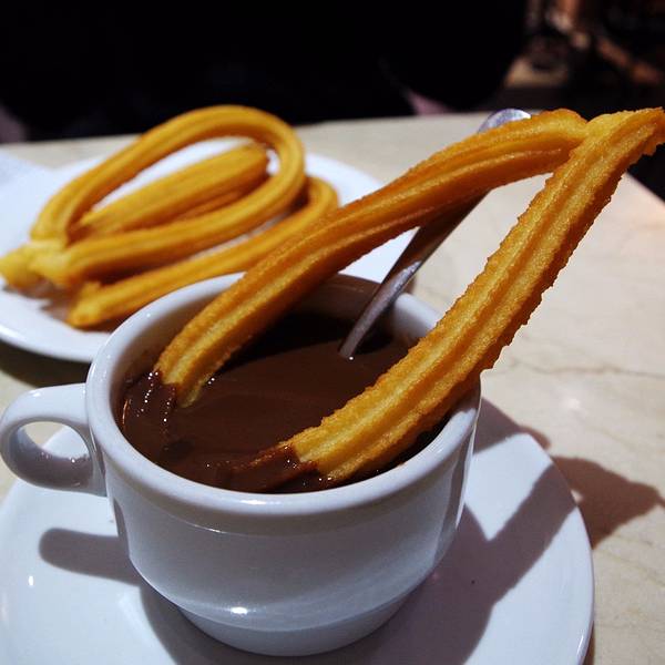 "But what you have to taste here are the Spanish churros or porras, they are not the same thing. Porras are the typical madrileños, a bit wider. I personally prefer the lighter churros."