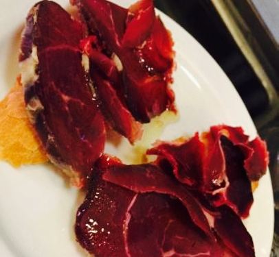 中途玩累了以后,我们在这个地方停了一下,喝了一杯酒,感觉是很不错的地方。我们有腌凤尾鱼大蒜还有香菜,列昂腊牛肉也是很好吃的,非常的有嚼劲,口感很不错,这里还有很多其他种类的小吃,非常的广泛。