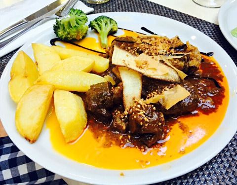 餐厅比较好找,就在老城的中心区域,餐厅有个露天的后院,我们在哪里享用了我们了塞维利亚第一顿饭。 其实食物的味道,记忆点不是很多,牛尾挺好吃的,鱼和牛排无功无过,sangria没我在巴萨喝的好喝。三个人吃了46欧,不贵。 这里的服务员非常热情,一直要和我们拍照。