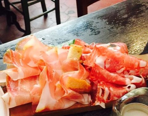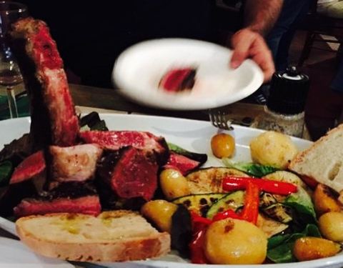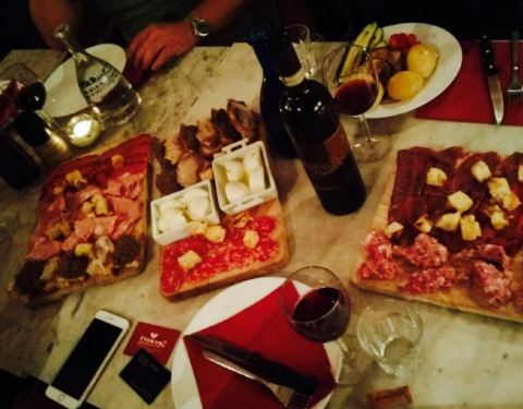超大的一份两人套餐!!!T-bone非常大份!味道也是相当不错的!连作为配菜的土豆也是烤的软烂而美味。还送了火腿片,第一次尝试帕尔马火腿,挺好吃的,不过呢,相比伊比利亚火腿,我们还是觉得伊比利亚火腿胜出,因为没那么干还有点油脂。不过也可能是部分不一样啦,我不太会分~~~吃完后,饱饱的!店员还送上一些酒给我们品尝,各种颜色的,有咖啡味道的、樱桃味道的等等,不过都是比较列的酒~~~总体来说,也是蛮推荐的一家店!大家到佛罗伦萨不妨试试~~~
