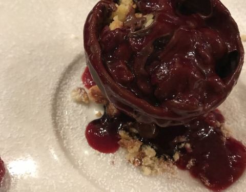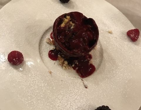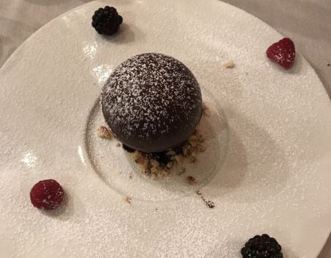 他们家的牛排和披萨都很好吃,除此之外我想推荐他们的甜品甜品菜单不是很多,让服务员推荐就好。要了一个巧克力球,滚烫的巧克力酱浇下去,巧克力球就自然而然的融化了。