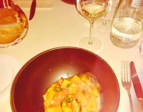 菜单是现代和具有挑战性的,有很多有趣的成分组合,生鱼、贝壳鱼、葡萄酒、甜点、冰沙和白巧克力相当的好吃