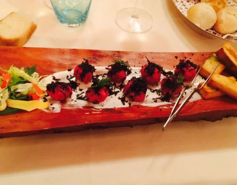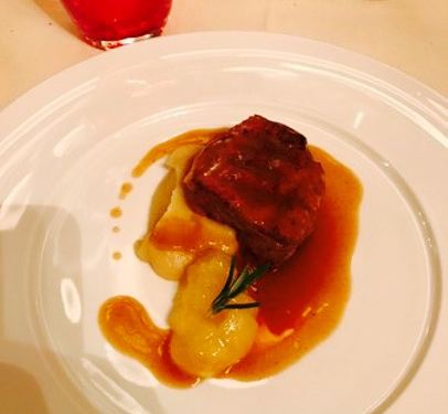 里面的小吃味道挺不错的,配上威尼斯特色的红酒,很棒,餐前面包还是很好吃的,牛肉卷有点点生,孩子不能吃