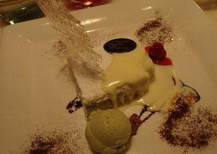 听当地居民说,这家餐厅食物的烹饪是最为讲究的,而且摆盘精美漂亮。 饭后甜点深的我心,冰淇淋搭配的蛋糕,冰淇淋是香草味的,吃的时候一点不会感觉冰凉,香草味不是非常的浓厚,而是淡淡的。 蛋糕奶味十足,吃起来软软的,甜而不腻,非常的好吃。
