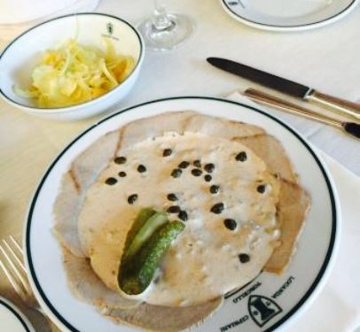 和朋友到达餐厅的时候已经是中午了,餐厅餐位几乎都已经坐满了,可见生意是多么的火爆。 意大利面,我的最爱,黄色的面,看上去像是水晶面一样,面非常的滑溜有弹性,吃起来软软的,里面的牛肝非常的新鲜,吃在嘴...