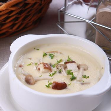 - 奶油蘑菇汤,听名字就觉得是一道非常不错的菜。店内装潢高贵典雅,格调大气,餐厅外面也是景色优美