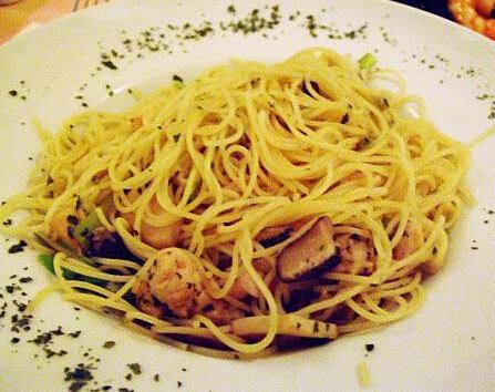 和朋友到达餐厅的时候已经是中午了,餐厅餐位几乎都已经坐满了,可见生意是多么的火爆。 意大利面,我的最爱,黄色的面,看上去像是水晶面一样,面非常的滑溜有弹性,吃起来软软的,里面的牛肝非常的新鲜,吃在嘴里不会感觉渣渣的。