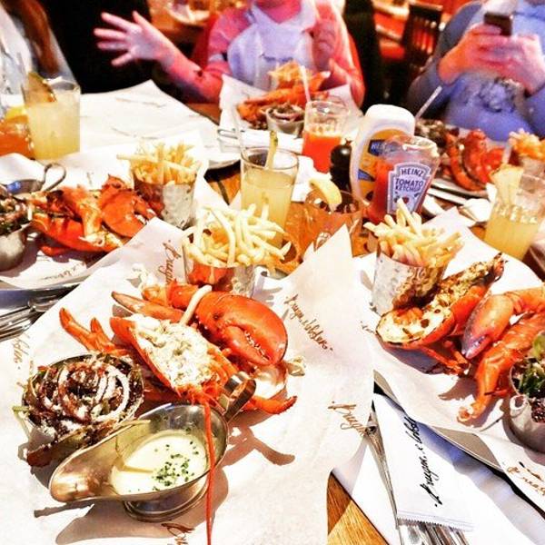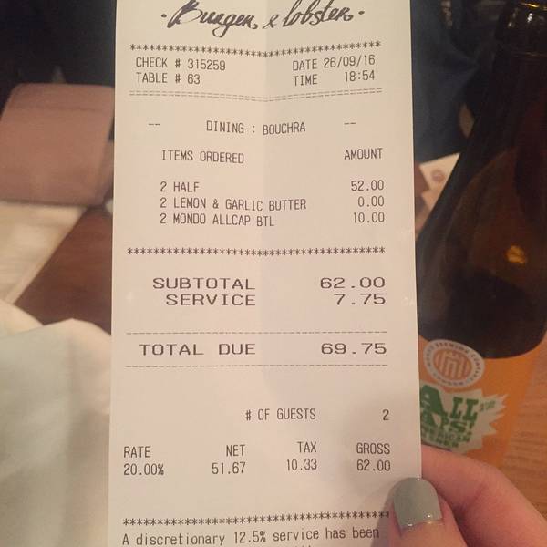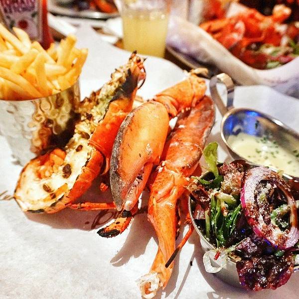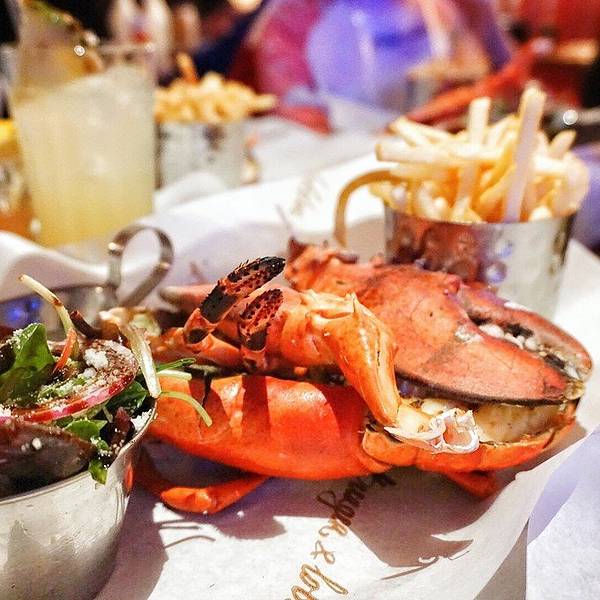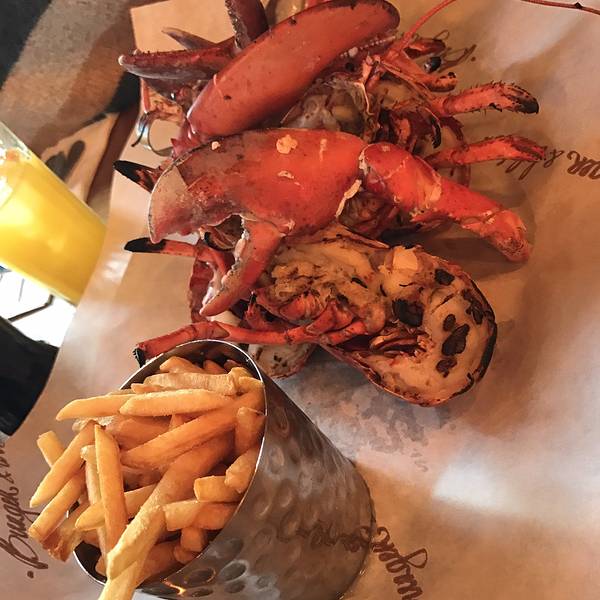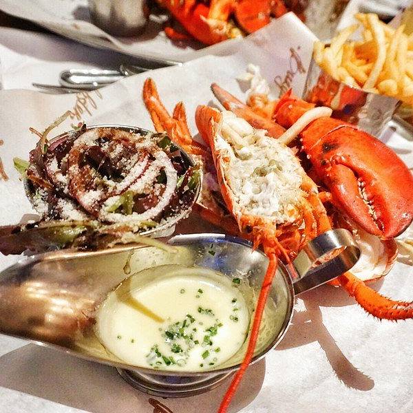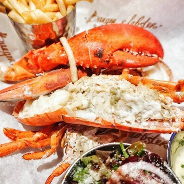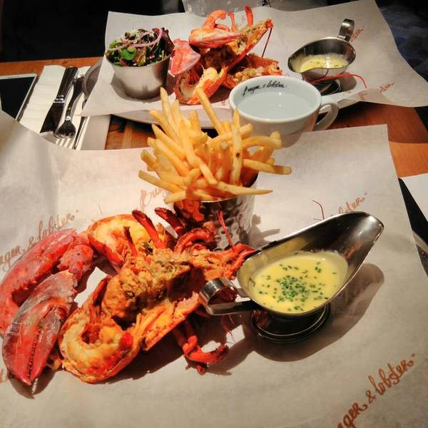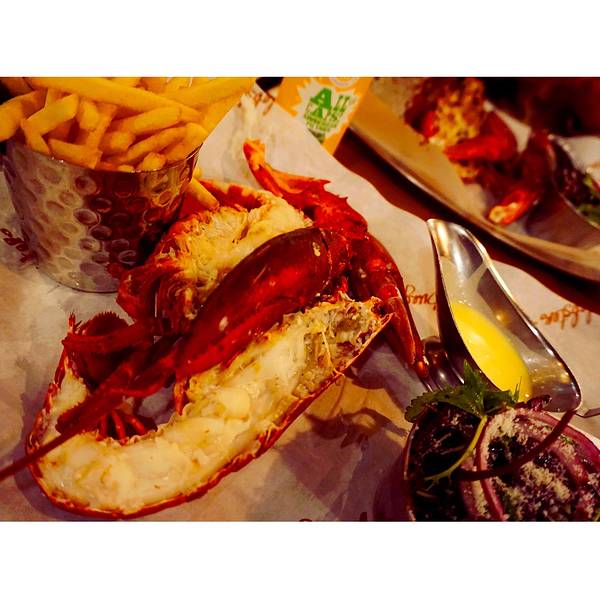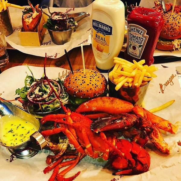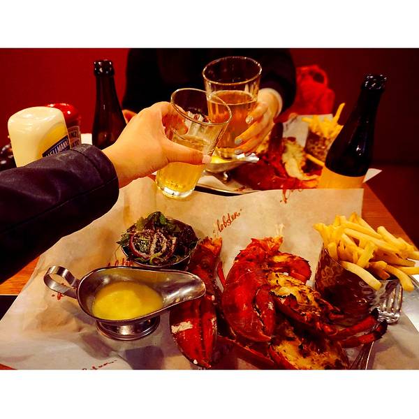 从Oxford回到伦敦市内的时间还早,就打算来一顿大餐~ 首选当然就是出发前就盯了好久的Burger and lobster了,呜呜真的超好吃,特别是那个酱汁,龙虾肉沾了之后特别香!原只的有烤龙虾和蒸龙虾两种,还有龙虾卷,不过我们想着既然要吃还是先吃原只的吧,在店员的建议下,烤和蒸的各来了一只,个人觉得蒸的更好吃,因为保留了龙虾肉的弹性和肉汁,烤的就比较香口但稍微干身。后来回想来伦敦吃了这么多餐,就这餐才能算得上满足的大餐。满满的龙虾肉,一口咬下去超满足要了啤酒,一口肉一口酒,简直不能太棒。沙律和薯条都是可以免费再添的,不过我们吃完原本配的份额就感觉饱了。在Oxford吹了一天冷风淋了一天雨,本来还有点担心会不会感冒,但晚上这餐将我治愈了,果然我是吃货哈哈哈哈哈其实我觉得也不便宜啦,人均350软妹币左右