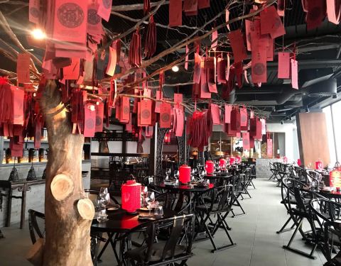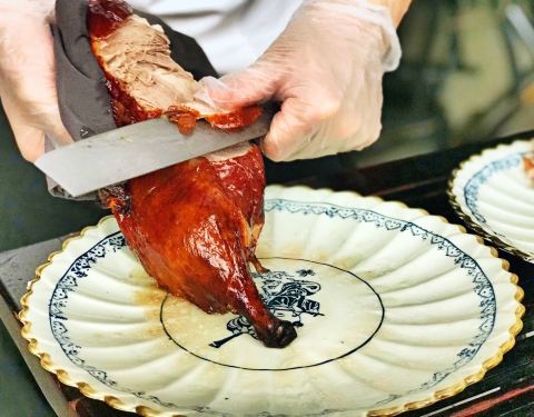- ...,大厅里面还有古树,使用的餐具都是有中国元素的瓷器,餐厅所在的位置视线也非常好,同样有北京烤鸭