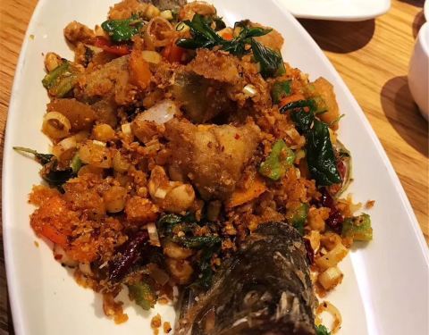 - 其实我吃到最辣的居然是干煸四季豆。我们提前了3周也没约到晚餐,好可惜!居然是油炸软壳螃蟹,真是一绝