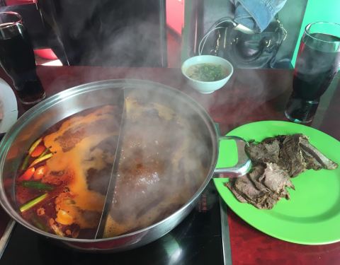 装修的就像四川路边的火锅店,不过在当地很火,很多华人小年轻喜欢来这里吃,里面的锅底不错,辣的很刺激,牛肉稍微差一点,总体不错。