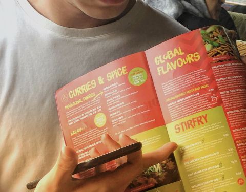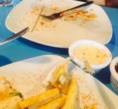 - 我们吃了咖喱鸡、炒面条和芒果奶昔,芒果奶昔很粘稠,非常好喝,里面的服务也很不错