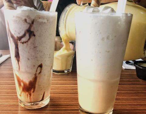 我们吃了咖喱鸡、炒面条和芒果奶昔,芒果奶昔很粘稠,非常好喝,里面的服务也很不错