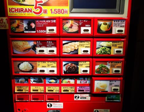 诞生于1960年的一兰属于正统的九州拉面,小麦粉制成的劲道面条,精心熬煮的浓郁猪骨高汤,以及能化解汤油腻感的秘制辣酱,是一兰的致胜法宝。店里的拉面只有一种,但是可以选择面的硬度、汤头浓度、辣的程度等等。 总店的门面异常的高大上,给人一种拉面店居然也可以那么大的感觉,与分店不同的是总店除了贩卖拉面外,还出售与一兰相关的纪念品。