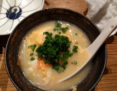 水炊きをスープを使った、月替りランチ。職人の技を感じます。水炊きコースは刺身、ツマミなど、他の水炊き屋さんではなかなか味わえない楽しみがある!