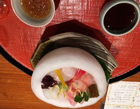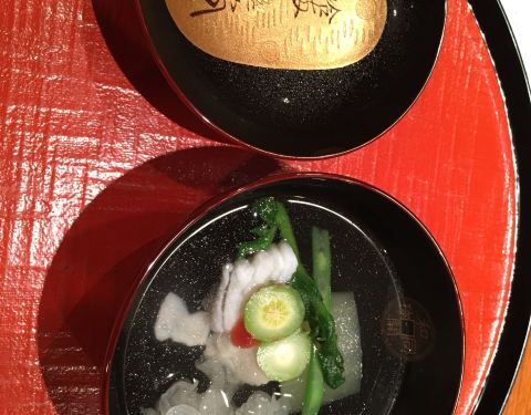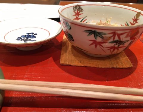 店里菜单只有四种套餐,我们选了最贵的那种,12000日元一套,不含酒水。菜汤饭一道一道的上,味道不错,颜值更是高过味道。每一道都吃的非常干净