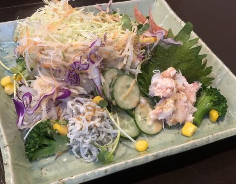 宝宝超过四岁了,所以点菜时有最低人消,于是我点了两套招牌点的釜饭和一份蔬菜沙拉,事实证明还是很明智的
