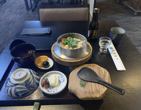 来早了,在门外徘徊。看到先预约后上门的牌子,心里有点打鼓。然并卵。顺利入座。 点了最贵的套餐,最贵的酒。 给本次之行画上圆满的句号。 发个七味釜饭的特写,以供参考