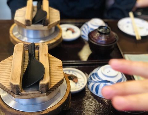 上次一个人来奈良的时候,就相中过这家餐厅,当时排队整整三四圈,只能往返经过后无奈放弃。 这次和宝宝全家旅行时,再次想来吃这家,恰巧回程时排队人群不算很多,于是在约十多人的队伍后面排起来了。 一直下着下雨,排了一会队,会有服务台出来递交菜单,下一次再出来时,她会登记点菜,也是为了方便能够更快吃上饭吧,毕竟这种传统釜饭需要时间。 我们两大一小,宝宝超过四岁了,所以点菜时有最低人消,于是我点了两套招牌点的釜饭和一份蔬菜沙拉,事实证明还是很明智的。 「奈良七种釜饭套餐」 这款是适合新客尝新的,基本上店内所有招牌的都在其中了。 「鳗鱼釜饭套餐」 老公点的这套,而且吃到赞不绝口 「蔬菜沙拉」 事实证明宝宝很爱吃,家有不吃蔬菜宝宝实在是不得已啊,每天换着花样让她多吃蔬菜 服务非常殷勤,釜饭也是让人能吃出最初食物该有的味道,很是复古清香,来奈良超级值得打卡的餐厅