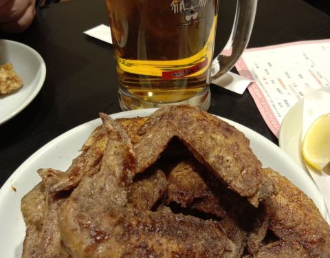 该店是名古屋的名小吃店。招牌的炸鸡翅膀很好吃,一人份5只,个头不大,外层脆脆的,再加上外面裹着的胡椒粉,现炸现吃,非常美味。虽然店里很多小吃是油炸的,但香而不腻,很受食客的欢迎。店里的服务也非常贴心。