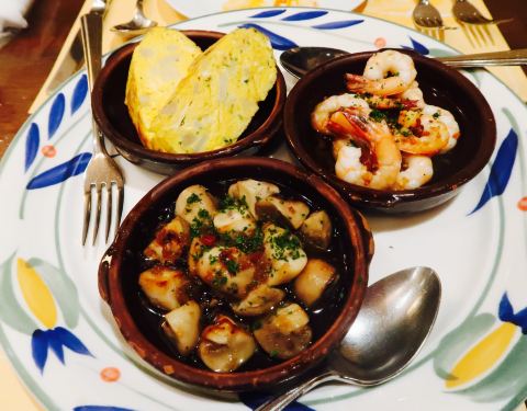 旅游的夜晚做的第二件事就是铺盖餐厅吃饭,这真的是一种特别有趣的体验,吃到了正宗的西班牙料理,没有试过,但是味道却真的特别好,店里昏昏暗暗,氛围很不错,吃到了西班牙的海鲜,也很特别,还有意大利面,配...旅游的夜晚做的第二件事就是铺盖餐厅吃饭,这真的是一种特别有趣的体验,吃到了正宗的西班牙料理,没有试过,但是味道却真的特别好,店里昏昏暗暗,氛围很不错,吃到了西班牙的海鲜,也很特别,还有意大利面,配的佐料很丰富。