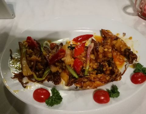 餐厅周围树木环绕,清新自然。餐厅的建筑也是富丽堂皇,用餐环境典雅考究。这里主要提供海鲜料理,还配以一些越南菜,已经被改良的菜品很符合中国人的胃。