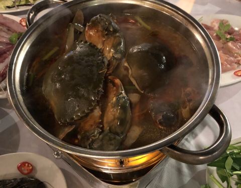 网红餐厅拔草啦!吃吃吃!煮完蛤蜊和螃蟹的汤超级鲜!酸辣味的鲜汤!好吃好吃!