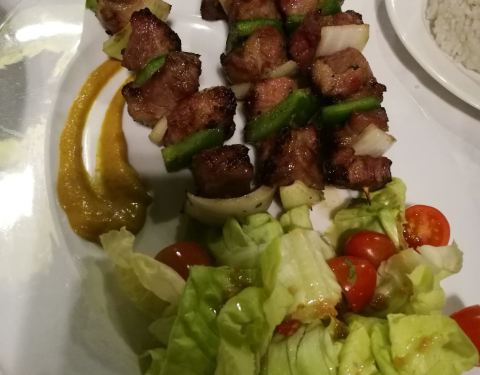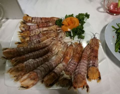 - 服务很好,食物有各种各样的海鲜,鱼很奇怪,烤得很干,鱿鱼很鲜,味道刚好,饭后还送个丰富的果盘,...