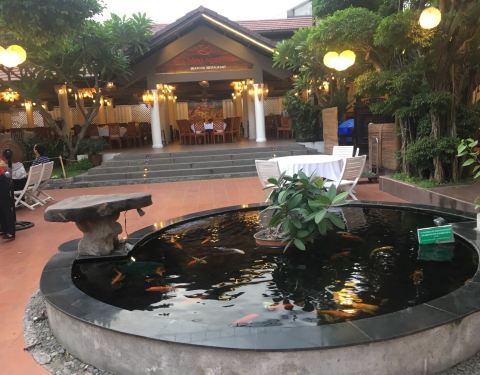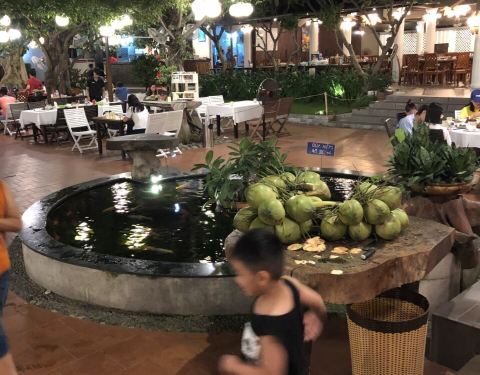 超过10年时间,餐厅总计占地3000平米,分为室外和室内用餐区,室外用餐区栽种了很多绿色植物,宛若热带花园。这里传统越南菜以及各式海鲜烧烤是主打。 环境真的非常好,绿树葱郁,满庭院的热带植物,还有一个池塘养着金鱼。发现越南几乎每个餐厅环境都非常好,这点都很满意,菜色与口味都在水准之上,很棒喔!