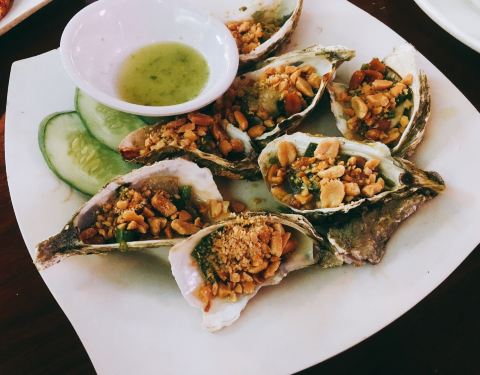 位于芽庄夜市中部,环境就和普通大排档没什么区别。但是,往往就是这种大排档才能将当地特色的食物体现得淋漓尽致,退去了华丽的外衣,将焦点集中在食物本身的味道上面。晚上去吃的,海鲜也都还能保证一定的新鲜度,生蚝虽然很小,但是因为新鲜,甜美的味道也不亚于很多肥美的生蚝。有一个小细节很想跟大家分享一下,关于服务员的服务意识。看到我拿出了烟摆在桌上,服务员立马递上了烟灰缸,这种小细节真正能让人感觉到餐厅应该有的服务水准。菜单有中文,点菜的服务员也会一点中文,点菜无压力,菜品性价比也很高,推荐大一定家来尝试一下。