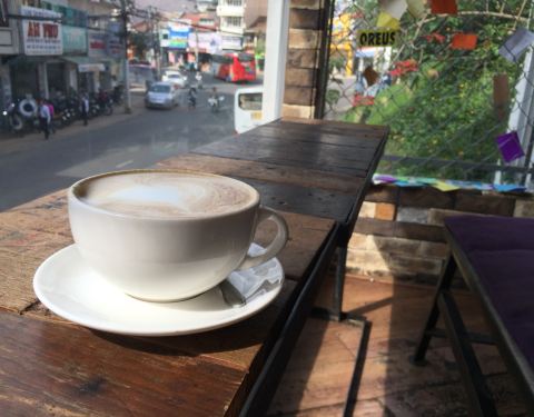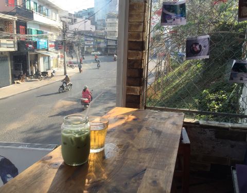 紫色的招牌能让你马上发现这家咖啡店,店面虽小,但木质的桌椅和充满情调的干花与矿灯装饰让小店充满了温馨的气氛。2楼临窗的桌子能俯瞰大叻的街景因此深受客人的喜欢。这里提供健康的燕麦水果沙拉和自制的酸奶,有着精美拉花的咖啡也是这里的特色。