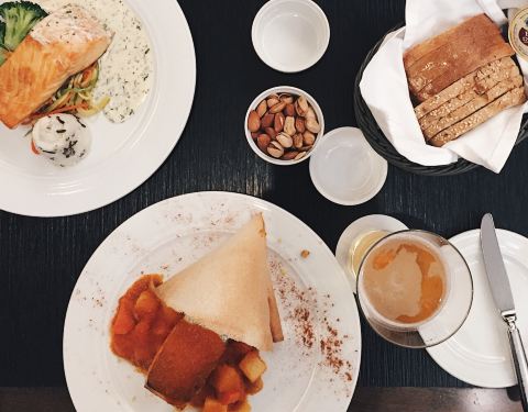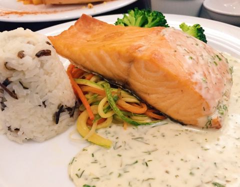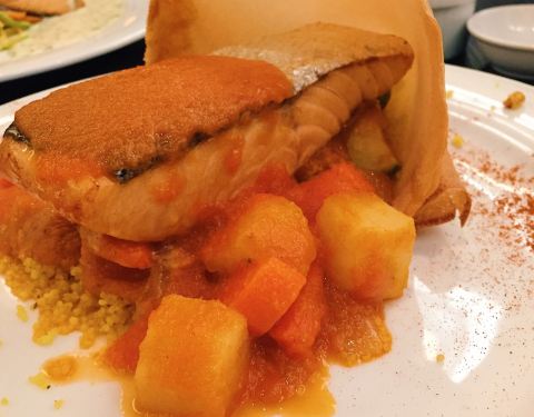主打三文鱼料理,三文鱼的处理中上水平。微辣的哈里萨辣酱配上三文鱼和古斯米有印度菜的风味,香草汁三文鱼配野米比较一般。巧克力圆顶在淋上热巧克力时瞬间融化,视觉享受大于味觉享受。餐厅正对着室内滑雪场,用餐时能欣赏雪地景色。