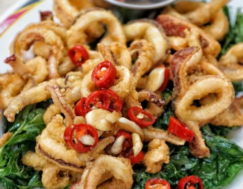 夜市门口的海鲜店哦,里面都是卖活海鲜的,生鱼片不错哦,要了一个碳烤猪颈肉,这个猪颈肉有点点泰国的味道哦,活鱿鱼很好吃的。 2017-10-18 10:12来自携程 网友