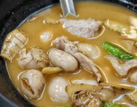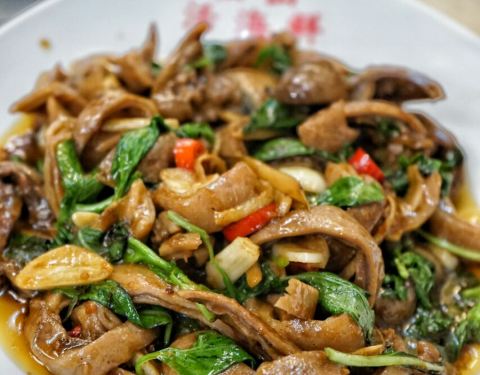 基隆庙口夜市难得能有室内空间可以小酌的摊档之一,跟老板娘闲聊时伊介绍说这家店开了四十多年。海鲜品种不是很多,总体鲜度还算不错。心心念念的鲨鱼烟换成了工厂货,品尝不出新鲜滋味。公鸡特殊器官煮了老姜麻...