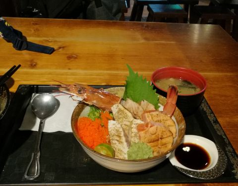 还不错的拉面哦,里面分辣的和不辣的两种,辣的比较好吃一点点,那个三文鱼刺身的盖饭很不错哦,里面...