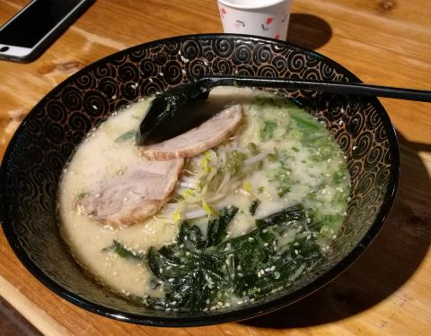 很不错的一家日式餐馆,店铺不大,但干净整洁,店员服务很好,点了一碗拉面和一份拌蔬菜,蔬菜很新鲜,口感非常清爽。拉面也很不错,料很足,汤很鲜。