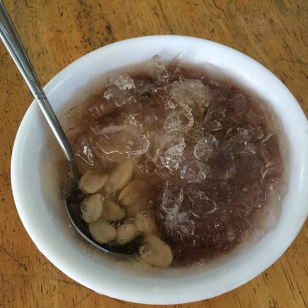 走过一条条小街以后,居然偶遇到了柯景腾他们经常来吃的那家老担阿璋肉丸。没说的,必须进去尝一尝!这勾起了多少人的青春。招牌肉丸+贡丸汤。在这里,不得不提这碗肉丸。这或许是我在台湾这么多天吃过的最特别的东西了。外面是一层用面粉还是糯米做成的皮,里面是味道很奇怪的肉丸。不仅长得科幻,而且那味道真不是一般的酸爽,尤其那汤汁,真是活了十多年来吃过最黑暗的东西,这是属于酸甜苦辣之外的一种味道。一开始感觉很难吃,简直无法下咽的奇怪味道,但是后来会吃上瘾,就好像我的小伙伴一样,一开始吃的时候简直吃得生不如死,过了两三天居然开始怀念那股味道了。貌似那家店好多人在吃,而且还吃的津津有味的。对了,这个听说还能蘸辣椒酱吃。。。。。贡丸汤,份量比较小,但相对那个肉丸来说真是好吃太多了!很传统的吃冰店。吃完那碗肉丸真的要怀疑人生了,赶紧在对面吃碗冰来缓缓劲才行。
