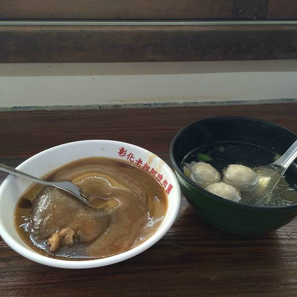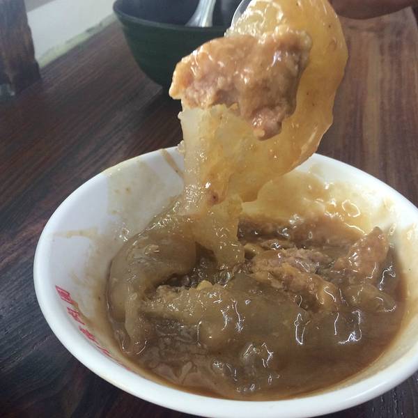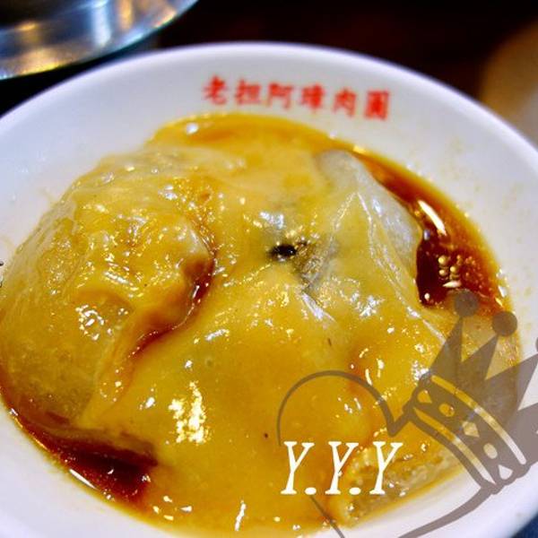 为了这碗阿璋肉圆也要来一趟彰化!在见到肉圆的样子之前,我以为肉圆就跟丸子差不多呢,还很好奇肉圆怎么是一粒一粒的卖。邂逅和普通饭碗一般大小的阿璋肉圆那一瞬间,秒懂为啥是这么个卖法了! Q软的外皮由番薯粉加水制成,馅料中包含小鲜肉、红葱头、鲜笋丁和香菇,酱汁由酱油、花生粉加糯米粉调成稠酱,端上之前会淋一匙锅中的汤汁,口感甜甜的味道鲜鲜的。