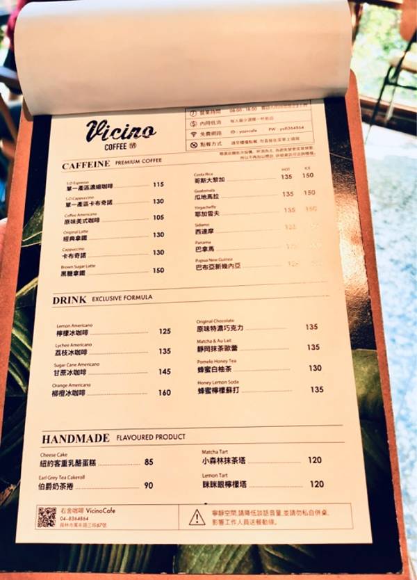 这家咖啡可以啊,我专门从台北坐火车到台中,再从台中转车到彰化然后一路到员林,哈哈。 这家咖啡店地理位置可以的,这个小镇挺淳朴,到了晚上没有灯红酒绿,看到的都是很真实台湾中部地区的生活,等自由行重新开放了,我还要去der。 对面就是员林公园,所以满眼绿色,3层楼格局,墙头都爬满了藤蔓,看上去蛮有特色。一楼推门就闻香了,价格还比较适中,有手冲精品咖啡,也有经典意式。我选了2款咖啡,一款气泡饮,让燥热的我降温啊,舒爽。爬到2楼喝咖啡,景观位坐好,啜上一口冰冰凉凉的甘蔗冰美式,有甘蔗的清甜还有咖啡的香,这个搭配很神仙。另外还有荔枝口味的。巴拿马咖啡,手冲热饮,口感柔滑,饱满度不错,是一款中度烘焙的咖啡,颜色也比较澄净。蜂蜜柠檬苏打,颜值蛮高的,上面还点缀了一块干柠檬片。 咖啡配甜品,选了2个塔,口味都比较正点。 一款眯眯眼柠檬塔酸爽,另外一款小森林抹茶塔更合我意,抹茶味道挺浓郁的,塔底也很香脆。 服务员也比较亲切,说话声就是很典型的台湾普通话,我如果去住几个月可能也会带偏,平时说话都比较man的,哈哈。 充值1000台币还能办会员卡,堂吃价格就等同于外带,等于打了个小折,另外还送了免费咖啡品尝券,正逢本人生日月,还有coupon送,反正各种打折下来真的划算了不少。开了应该有些年头,不是休息日,过来喝咖啡过慢生活的人络绎不绝。吹爆这家咖啡小馆~!