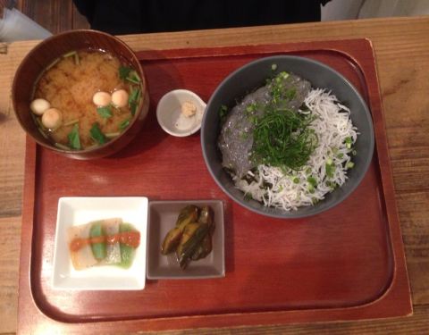 お昼時は割と混む。ファミレスと同じく名前を書いて待つシステム。2階席が広くて快適。桜えびとしらすのピザトーストは半分に切った食パンにそれぞれ桜えびとしらす、その上にチーズをたっぷり乗せて焼いたもの。おいしい。しらす丼もさっぱりしてておいしい。