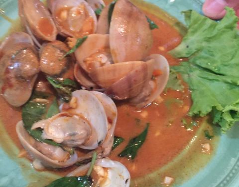 甲米奥南的网红餐厅、当然已泰菜海鲜为主。去的晚了、皮皮虾已卖完,当然皮皮虾的价格也已经和魔都相仿了。我们七点多到的、店里全部坐满了、九成是国人,一阵大点、最钟意用青蟹烧的咖喱蟹,蒜蓉老虎虾也不错,...甲米奥南的网红餐厅、当然已泰菜海鲜为主。去的晚了、皮皮虾已卖完,当然皮皮虾的价格也已经和魔都相仿了。我们七点多到的、店里全部坐满了、九成是国人,一阵大点、最钟意用青蟹烧的咖喱蟹,蒜蓉老虎虾也不错,甲米第一餐、狂吃!