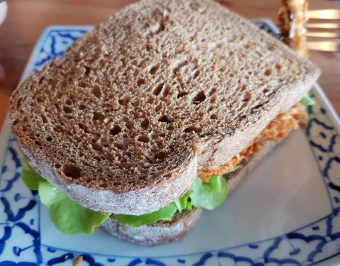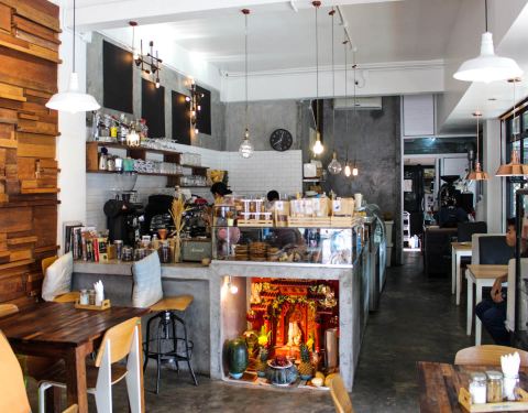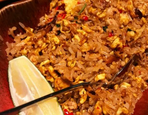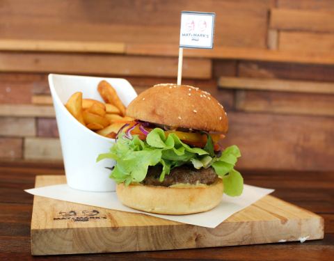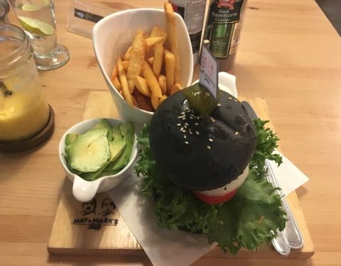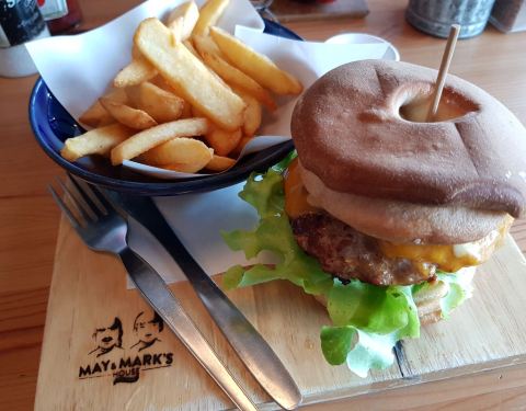 May & Mark 是店东一对儿女的名字,也是28年前就开始在甲米镇营业的咖啡店。今天已经是他们的第二代May在管理,食物比从前变得更多元化。自家烘培的甜饼干、松饼、面包都是每天新鲜制作。 这个Hungry Man Set 早餐里面的黑麦面包是他们家最大特色之一,成分有十种谷物和种子。 在这里找到羊肉汉堡配上特色酱汁 他们的各种咖啡都十分有名,是几乎每个甲米人都知道的闲来聚脚点。 冬阴功炒饭比一般的泰式炒饭味道重得多,适合重口味人士。而这里的冬阴功炒饭都带个咸蛋,咸蛋里的油和炒饭搭配着吃,整道菜也变得更香。