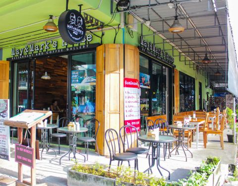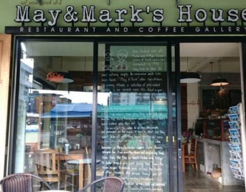May & Mark 是店东一对儿女的名字,也是28年前就开始在甲米镇营业的咖啡店。今天已经是他们的第二代May在管理,食物比从前变得更多元化。自家烘培的甜饼干、松饼、面包都是每天新鲜制作。 这个Hungry Man Set 早...May & Mark 是店东一对儿女的名字,也是28年前就开始在甲米镇营业的咖啡店。今天已经是他们的第二代May在管理,食物比从前变得更多元化。自家烘培的甜饼干、松饼、面包都是每天新鲜制作。 这个Hungry Man Set 早餐里面的黑麦面包是他们家最大特色之一,成分有十种谷物和种子。 在这里找到羊肉汉堡配上特色酱汁 他们的各种咖啡都十分有名,是几乎每个甲米人都知道的闲来聚脚点。 冬阴功炒饭比一般的泰式炒饭味道重得多,适合重口味人士。而这里的冬阴功炒饭都带个咸蛋,咸蛋里的油和炒饭搭配着吃,整道菜也变得更香。