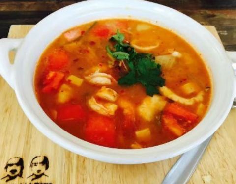 很西式的泰国菜,冬阴功汤怪怪的,有芝士味还是什么的。菠萝饭量很足 有很多腰果和虾子 还不错。餐厅竹子的桌椅,很有特色。在夜市附近,离holiday inn 很近 步行五分钟。服务很好。服务员会一点中文。