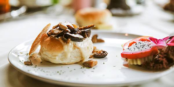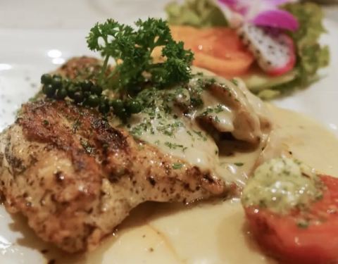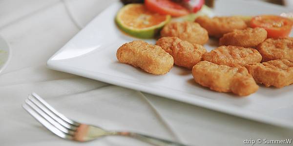 很有情调的餐厅,安静惬意。菜品以西餐为主,注重食物本身味道。蘑菇浓汤用法式餐包挖空做碗,注满馥郁香浓的奶油蘑菇汤,美味到根本停不下来。炸鸡块除了果蔬装饰之外,还可挑选配菜搭配,有14种选择之多。