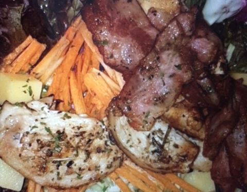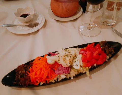 按着推荐慕名而来~餐馆的位置在山坡上~还算是好找~餐厅的环境和服务也是可以的~点了烤肉拼盘~里头有猪肉鸡肉牛肉~2个人吃的话是绰绰有余的~菜的味道也不错~