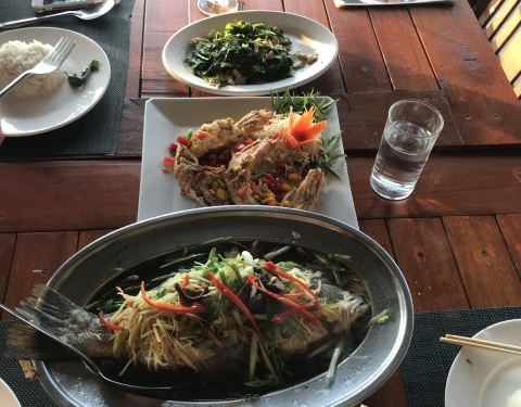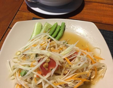 也是根据网上推荐过来的,强烈推荐芒果冰沙、冬阴功汤、咖喱螃蟹、青木瓜沙拉,清蒸鱼建议大家不要点了这个不是他们的强项、有两个会讲中文的小哥哥,国语比我标准,连续在他们家吃了两天,价格也实惠,接待时间早上10:00到晚上十点,风景优美海边适合带别人老公